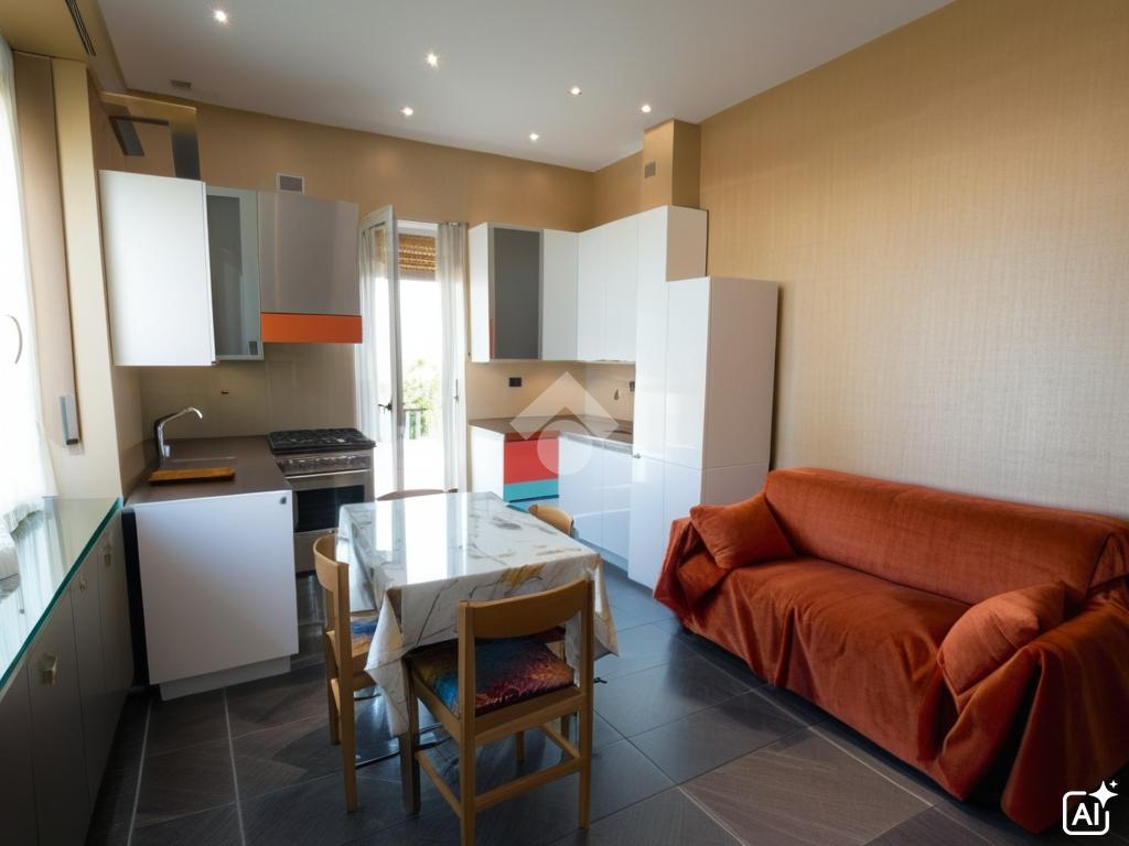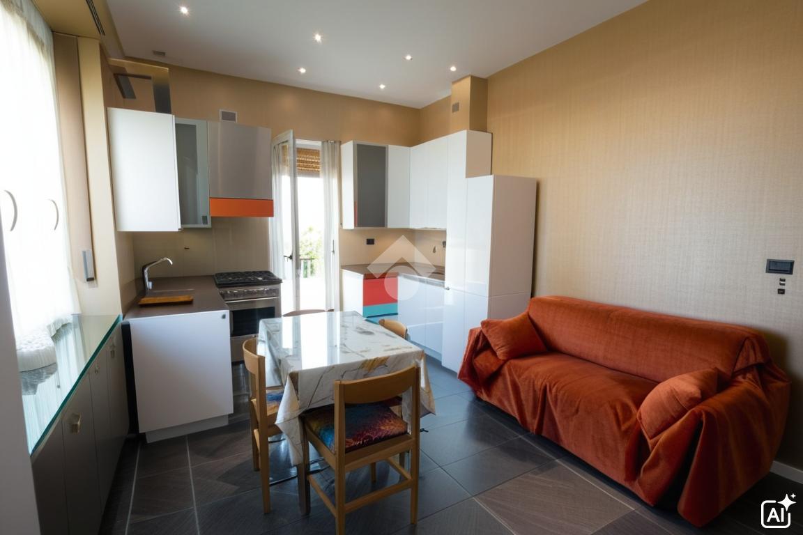 L’abitazione si apre sulla accogliente zona giorno composta dal soggiorno con cucina a vista, ambiente ben distribuito e funzionale.
